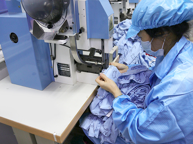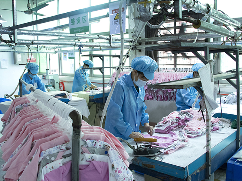 The main baby clothing production line has more than 300 sets of advanced sewing equipment, and all kinds of equipment are complete. It has 400 employees, including 300 sewing lathe workers, 20 tailoring workers, 40 inspection packaging workers,quality control 20 workers and 20 other technical management and operation personnel.