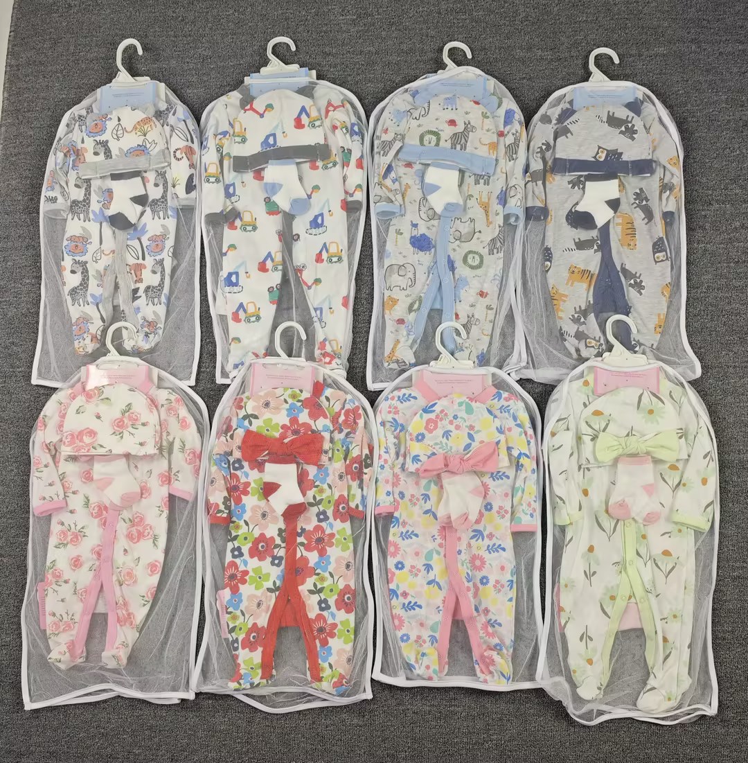 Not only are these sets stylish with European and American flair, but they’re also packed with features like anti-bacterial and quick-dry properties, ensuring your baby stays fresh and comfy. Available in sizes 3M, 6M, and 9M, each pack contains five sets in a practical ratio to accommodate your baby’s growth.