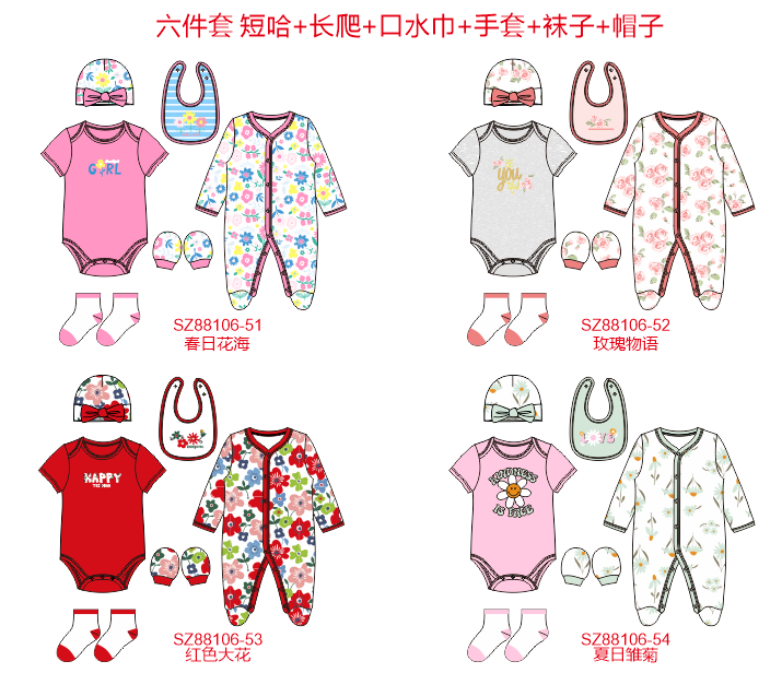 6pcs Short Sleeve Baby Clothing Sets Detail: