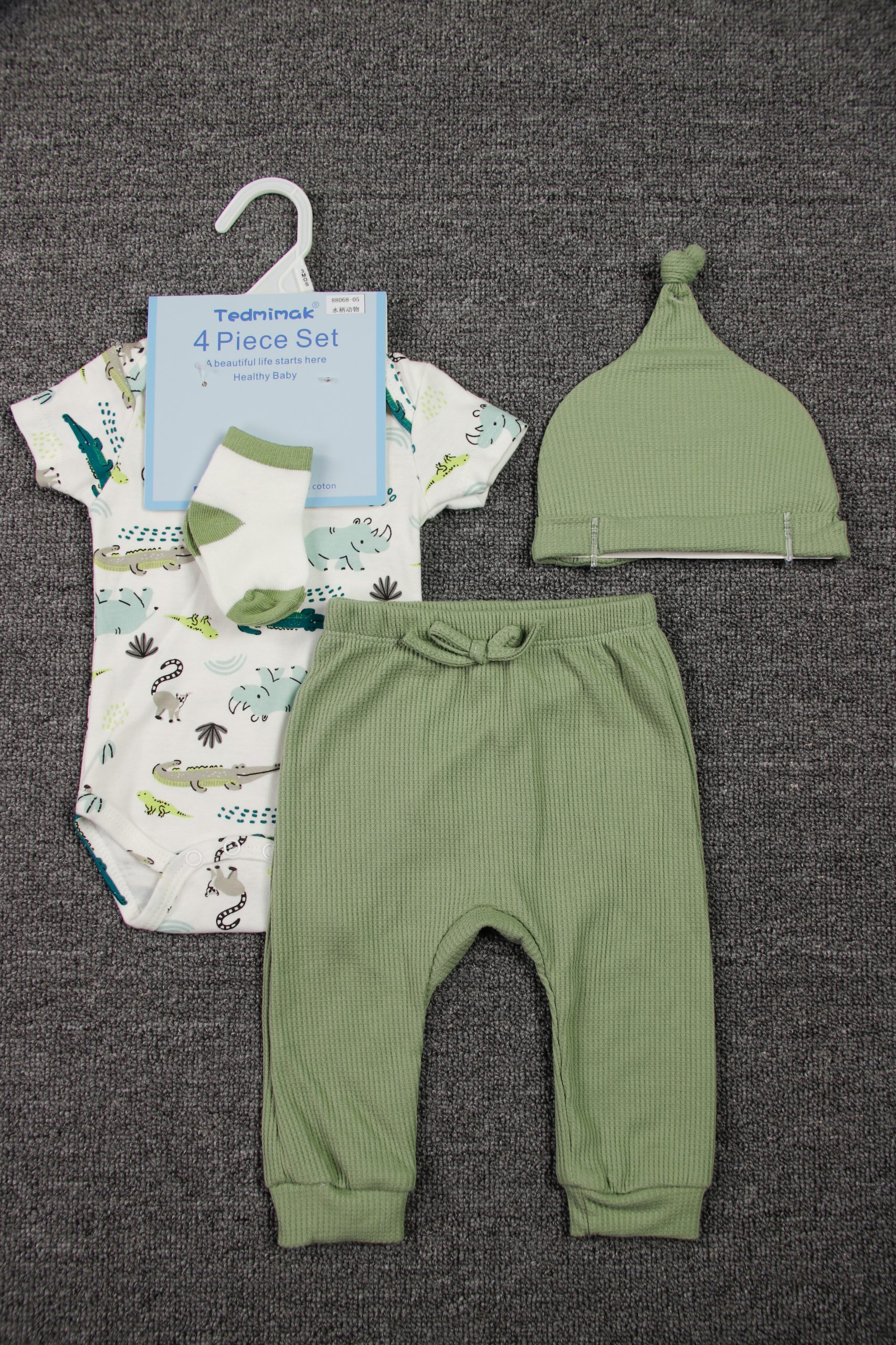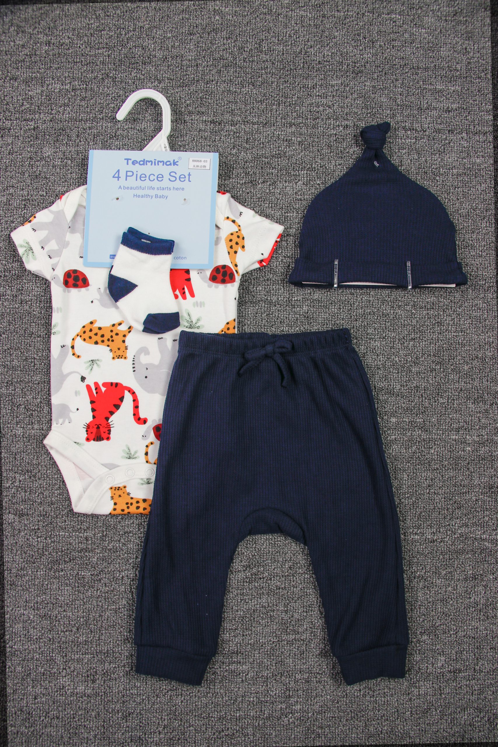 Introducing the perfect 3pcs baby boy romper set for your little one! Designed with comfort and style in mind, this set is made from soft, breathable cotton to keep your baby boy cozy in any season—spring, summer, autumn, or winter. Crafted by Tedmimak, this clothing set combines quality and functionality, featuring a short-sleeve romper, pants, hat, and socks, all in adorable animal patterns and a European and American style.