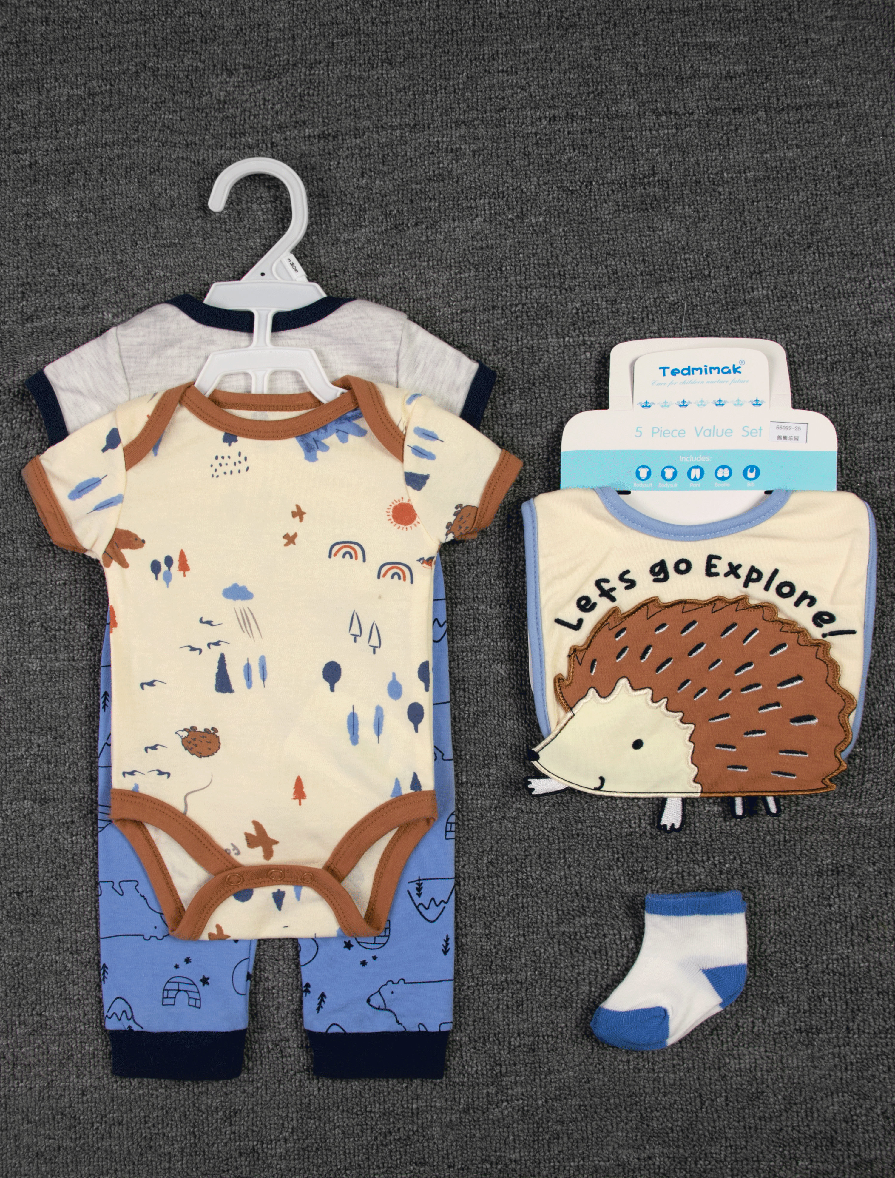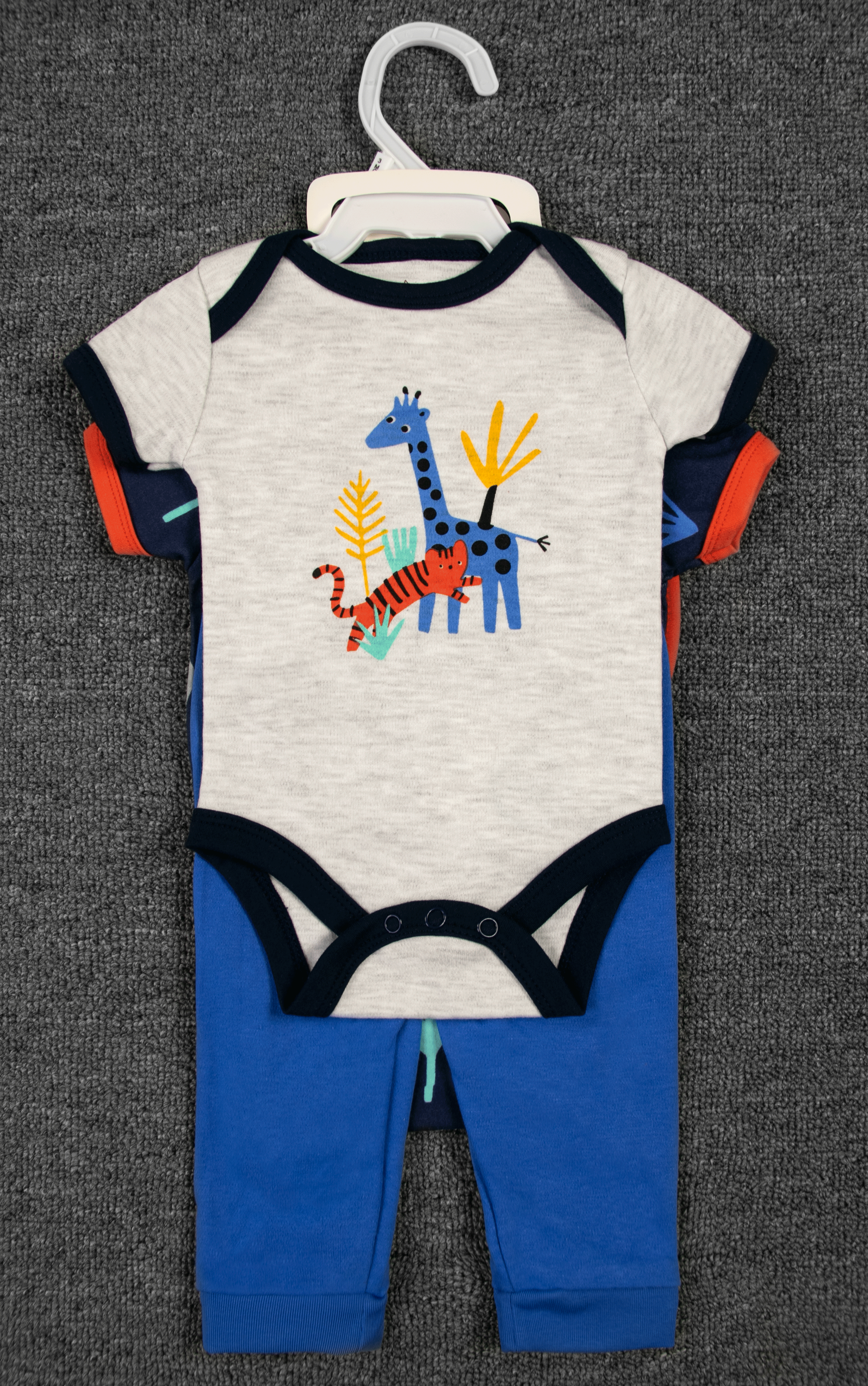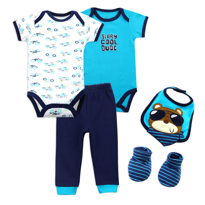 Each set includes 5 pieces with short sleeves and an O-neck collar—ideal for easy dressing. With sizes available for 3 to 12 months, these Newborn Baby Boy Jumpsuits are not only stylish but also practical for your growing baby. Why not choose a set that combines quality and cuteness?