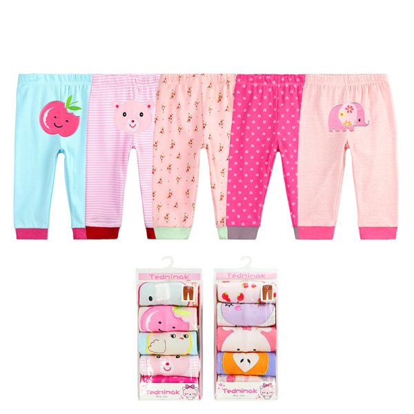 Each package contains five pairs of long baby pants, ideal for mixing and matching. With a minimum order quantity of just 12 bags, these long baby pants are ready for immediate delivery.