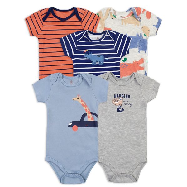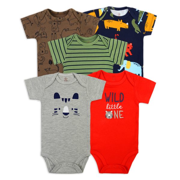 Introducing our charming baby short sleeve romper set, perfect for your little ones! This 5-piece set features extra soft cotton fabric and a lovely cartoon pattern, ensuring comfort for infants and toddlers.