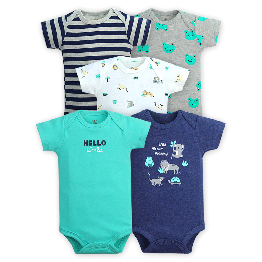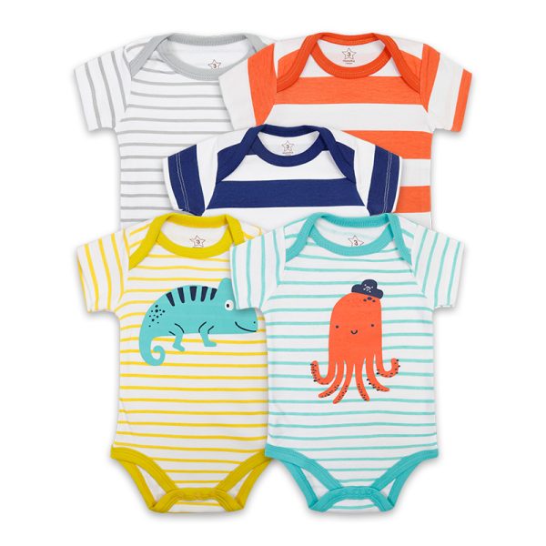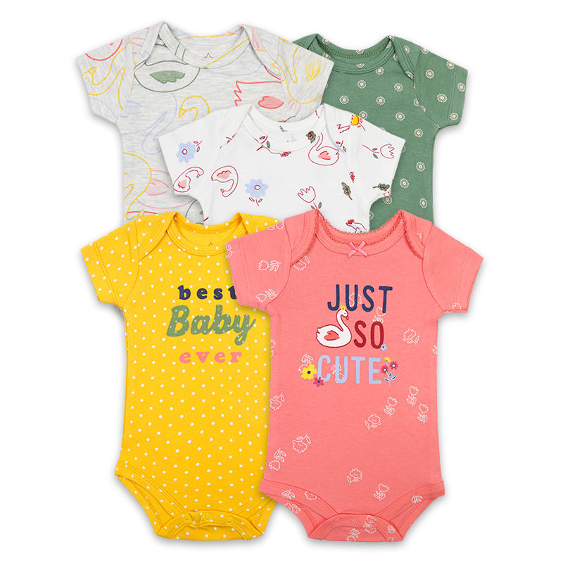 | good sell boys and girls clothes romper Short sleeve comfortable 5 pack snap button knitted baby rompers plain | |