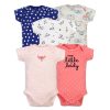 With a convenient button closure and short sleeves, our short sleeve baby romper is perfect for warm weather playtime. The combination of embroidery and print adds a cute touch that parents and kids will love.