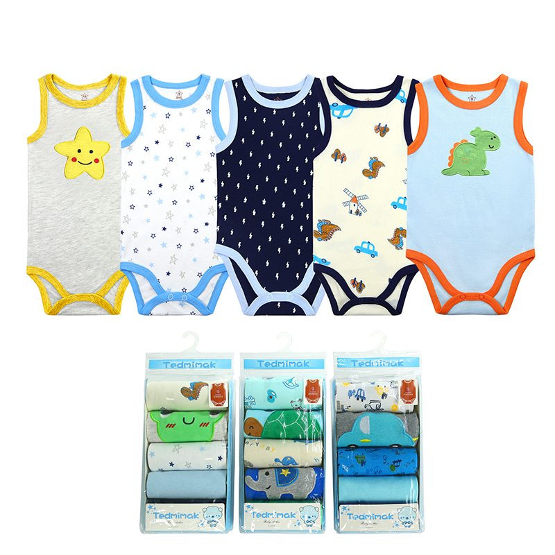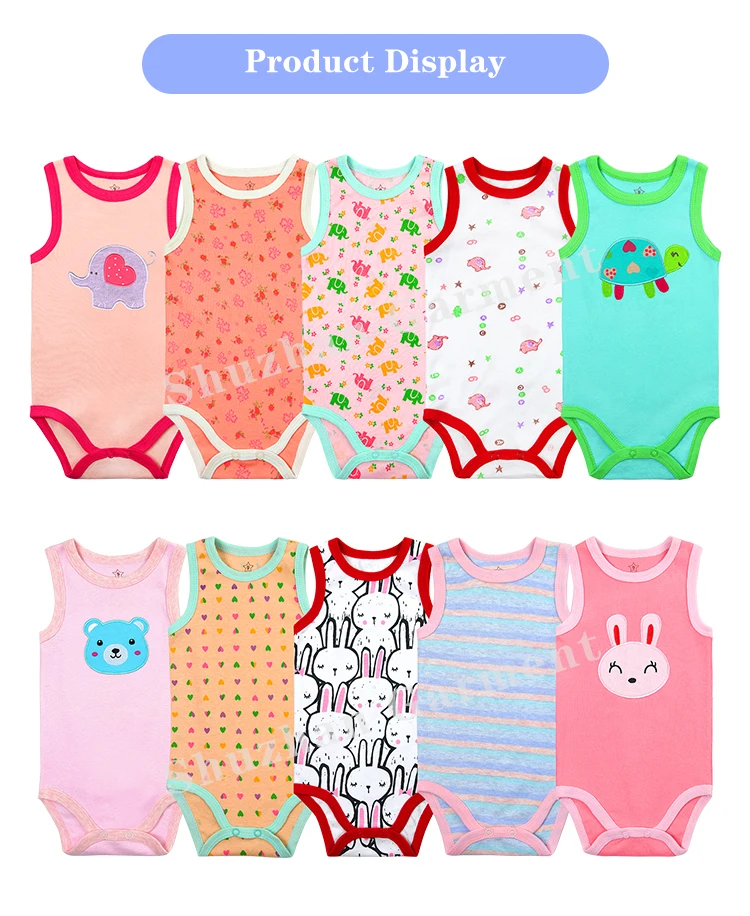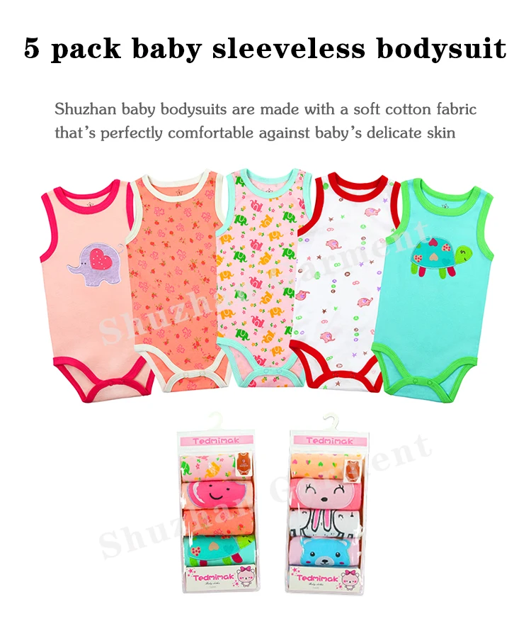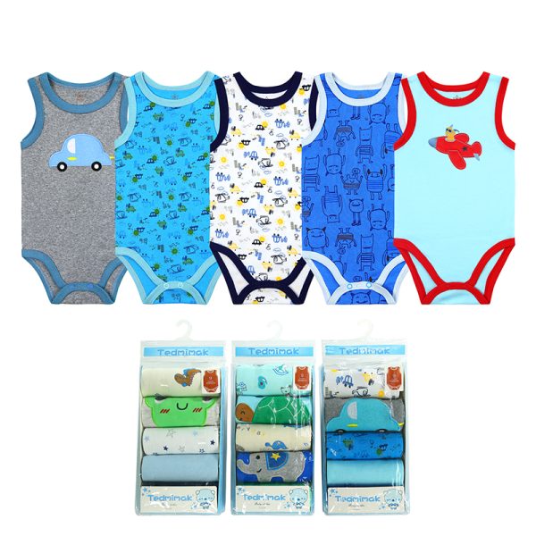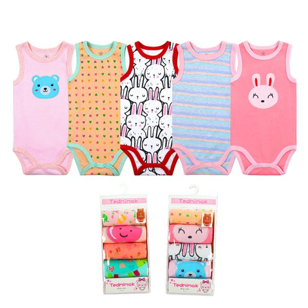 Each set includes 5 adorable newborn baby rompers, available in sizes 3M to 24M. The sleeveless design is ideal for warm weather, and the easy button closure makes dressing a breeze. Packaged in mixed colors for added variety, our newborn baby romper is a must-have for your baby’s wardrobe.