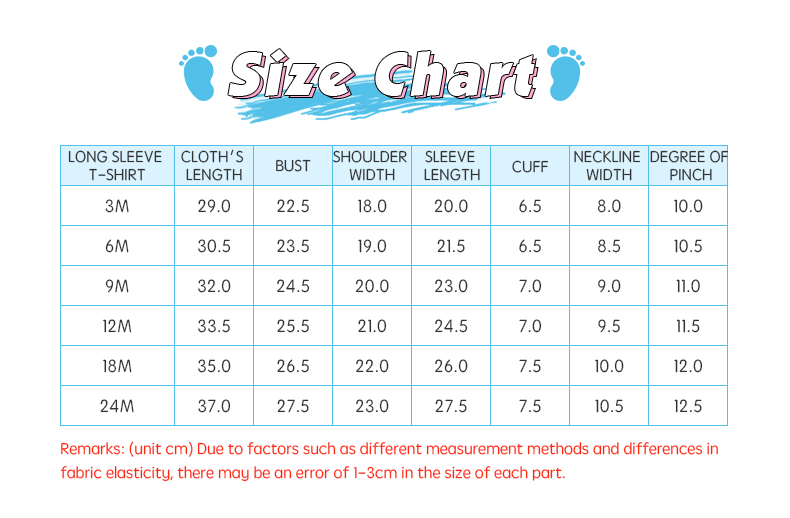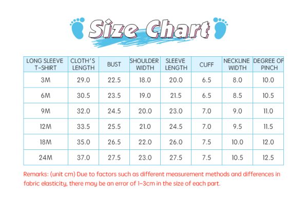 | Size | 3M 6M 9M 12M 18M 24M |