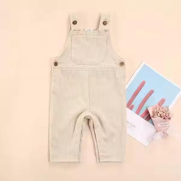 Choose our ODM/OEM Custom Spring Solid Corduroy Baby Overalls to create timeless and comfortable outfits that embody both functionality and charm.
